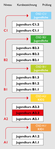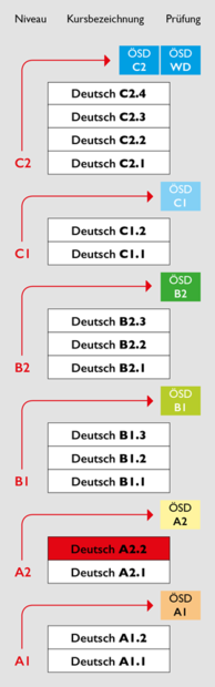 Sie können die ÖSD-Prüfung A2 ablegen. Zum Weiterlernen empfehlen wir Ihnen unseren Kurs B1.1 oder Intensiv B1. Und wenn Sie sich in einem Bereich spezialisieren wollen, können Sie auch schon aus einigen unserer Fachsprachenkurse oder Spezialkurse wählen, z.B. Konversation 1, Deutsch für Gesundheits- und Pflegeberufe, Grammatik 1.